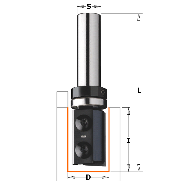 Straight cutters with two interchangeable knives fixed by special Torx screws. The top knife features a 3° sharpening for precision drilling and angled cuts. The cutter is equipped with a guide bearing above the cutting edge that allows you to position the template on the wood. Suitable for finishing, milling and grooving on panels (chipboard laminates, MDF) and hardwood. For use on portable routers.