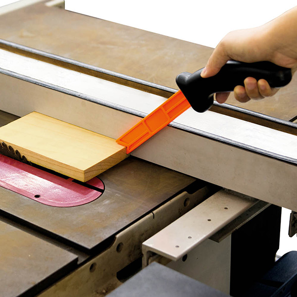 Spingipezzo in faggio 460x70x10 mm dotato di magneti per riporlo sul fianco delle macchine, spingipezzo in plastica e pressore con maniglia: gli utensili perfetti per lavori di precisione in tutta sicurezza.