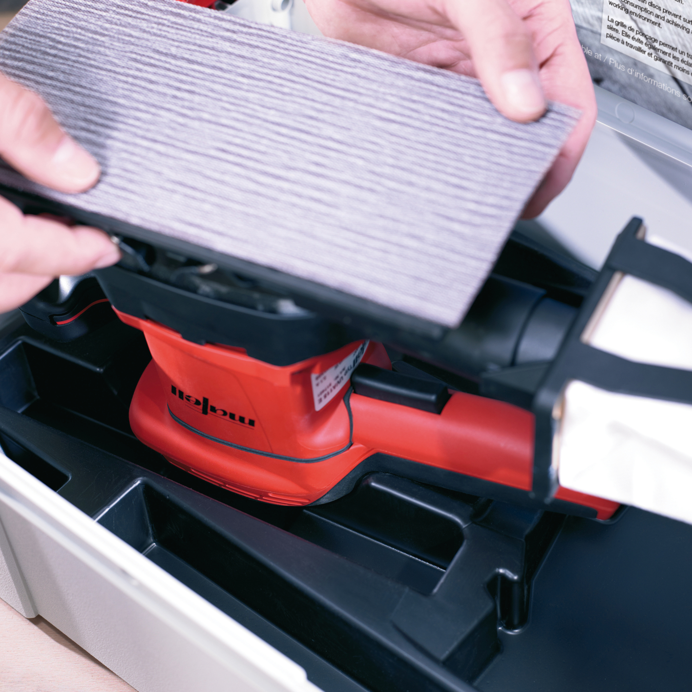 - 1 Set fogli abrasivi retinati Abranet®: 1 x P 60 / P 80 / P 100 / P 120 / P 150 / P 180 / P 240 / P 320, 1 Foglio abrasivo retinato Abranet® Delta 105, P 120, 1 Protezione UVA-SA 10 (10 x fori), 115 x 230 mm, Protezione UVA-SA Delta 105